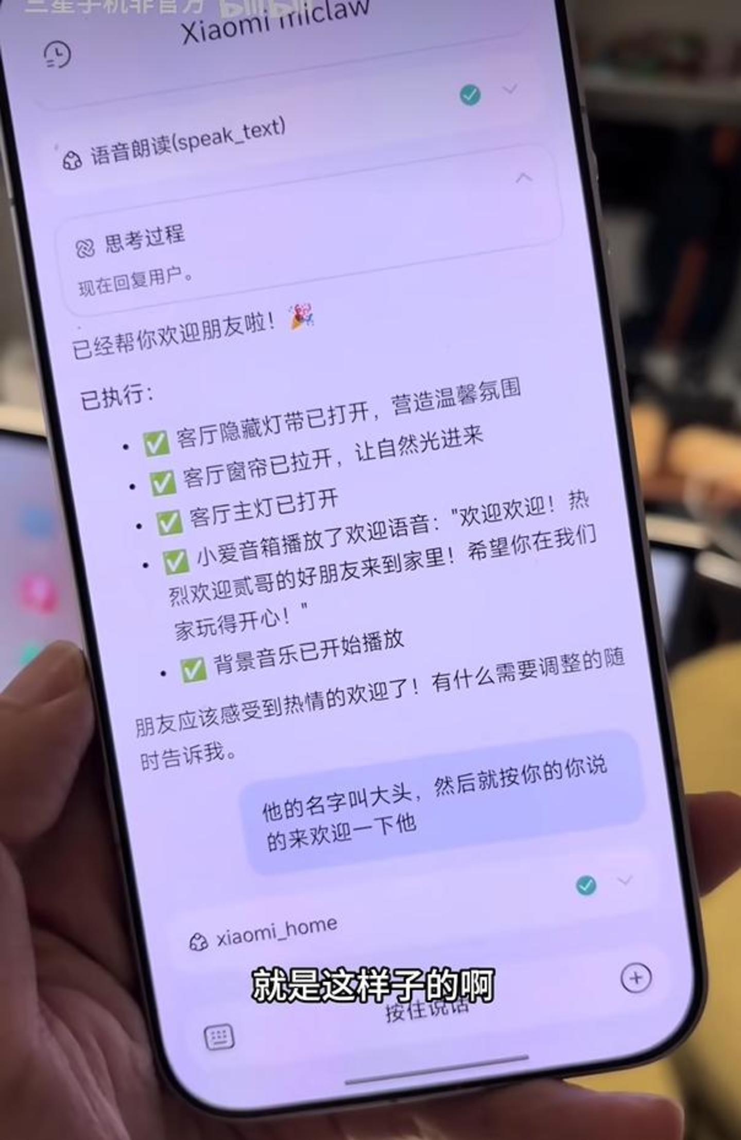 灵验户体验Xiaomi miclaw发现,比起之前要对小爱同学说出开灯、播放音乐的具体指示,不错班师对其“抒发意图”,Xiaomi miclaw便会凭据用户意图遏抑米家家居作念出反应。